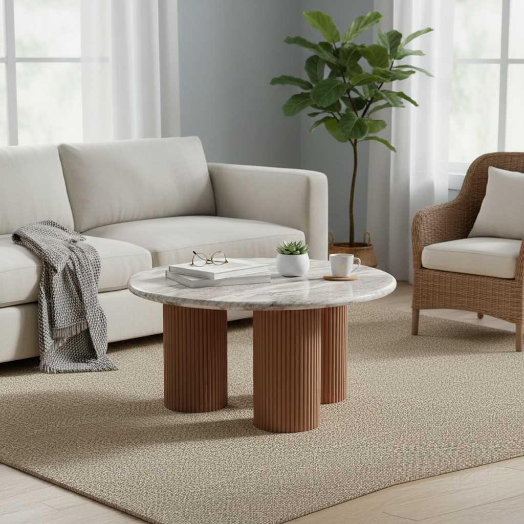The Ashford Coffee Table brings a stylish mix of classic architecture and modern organic flair to your home. With its sleek marble top and striking textured pedestals, it?s the perfect statement piece to anchor and elevate any contemporary living space.