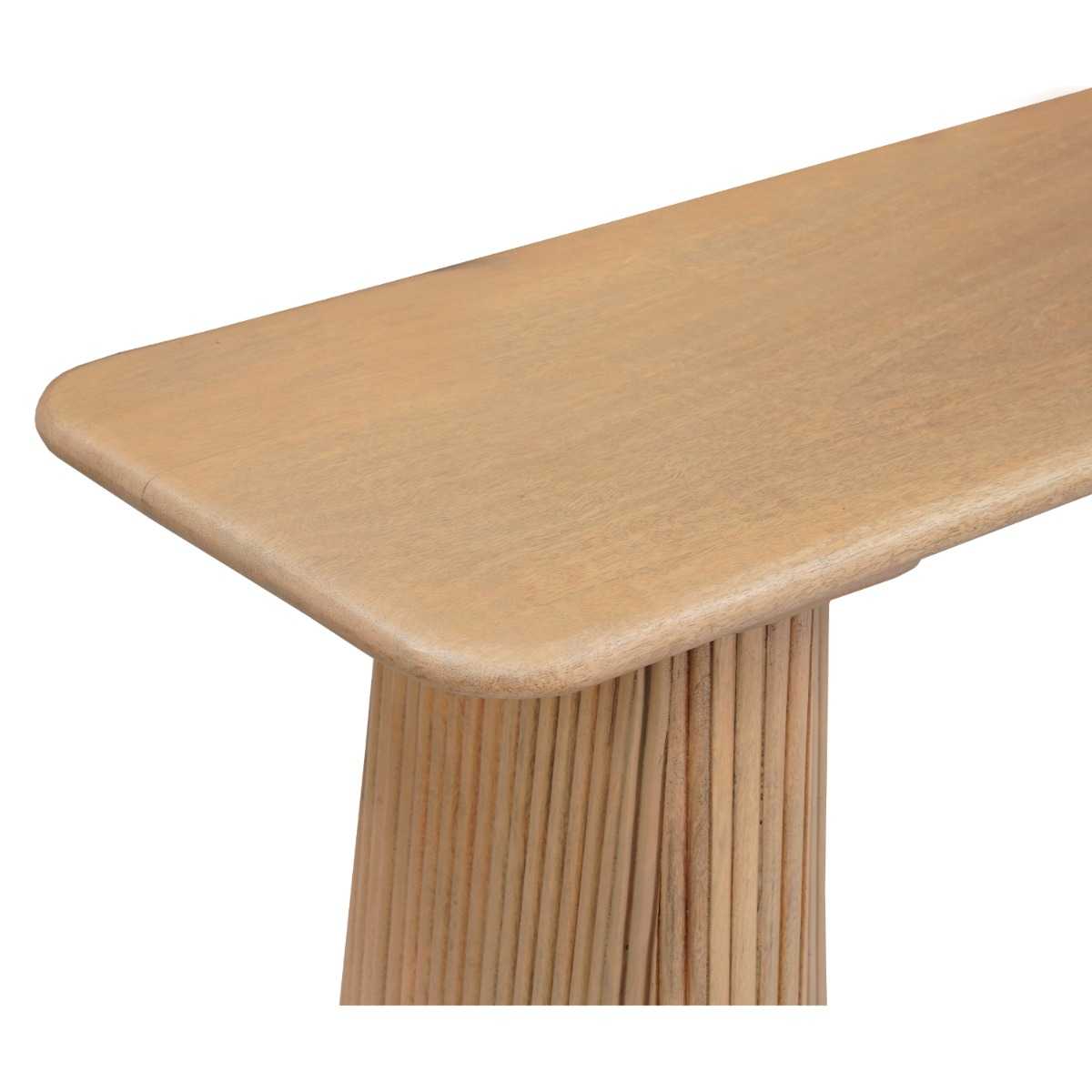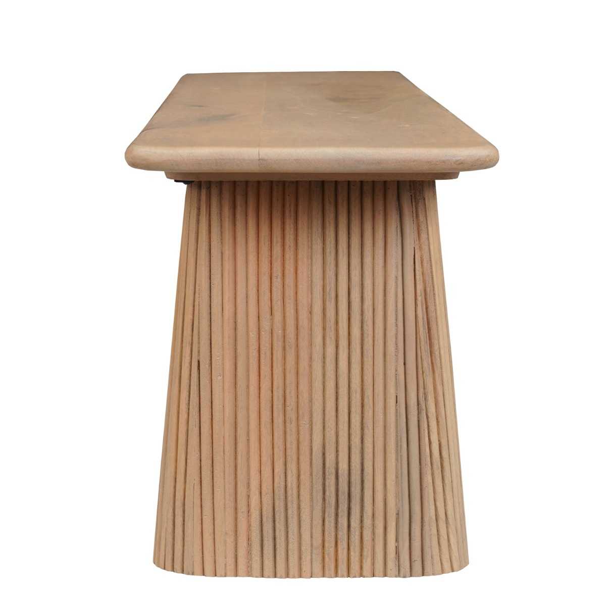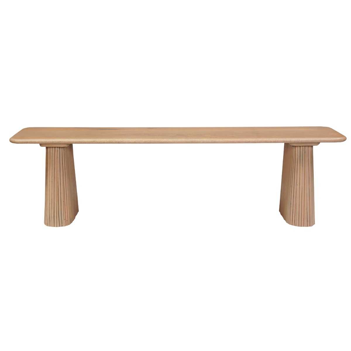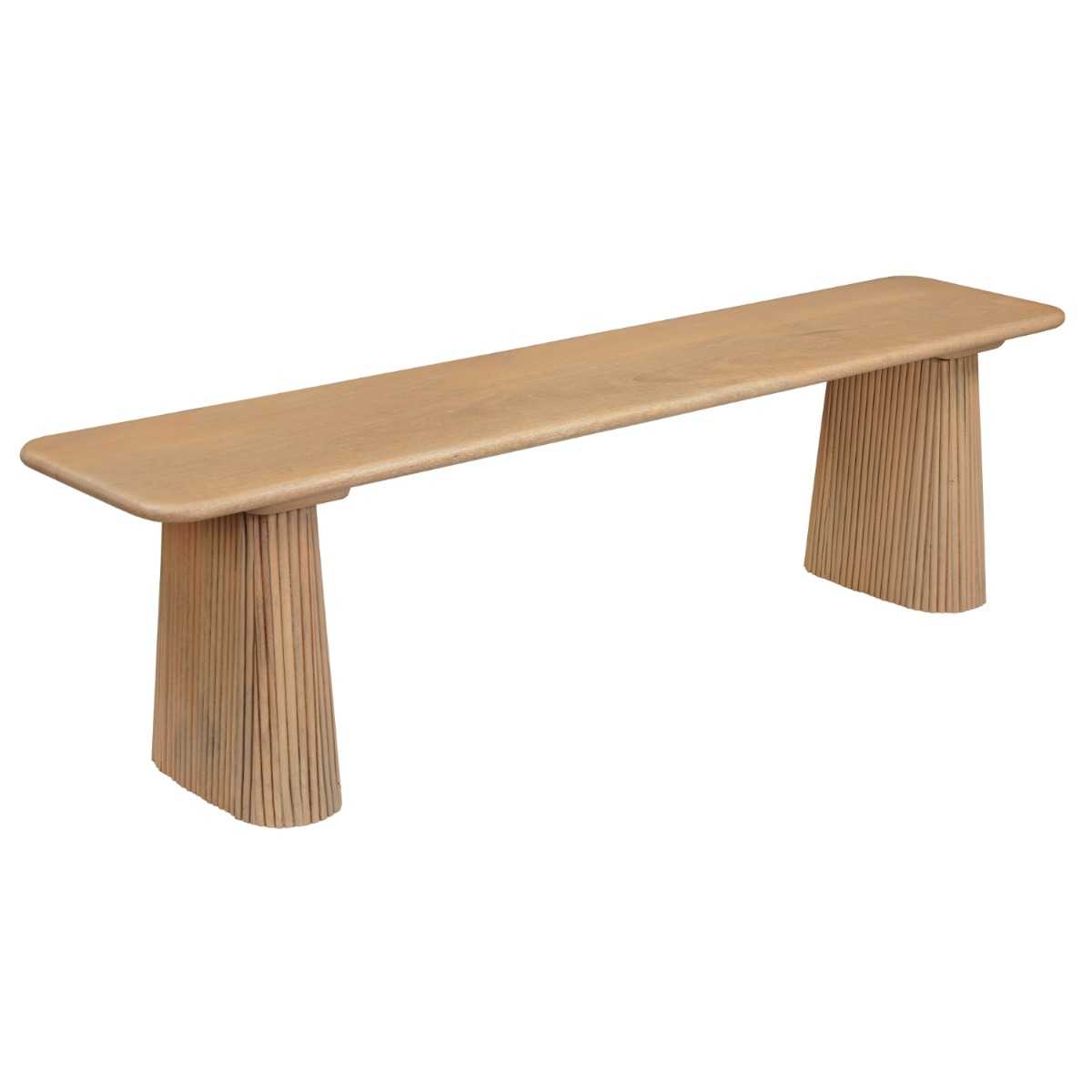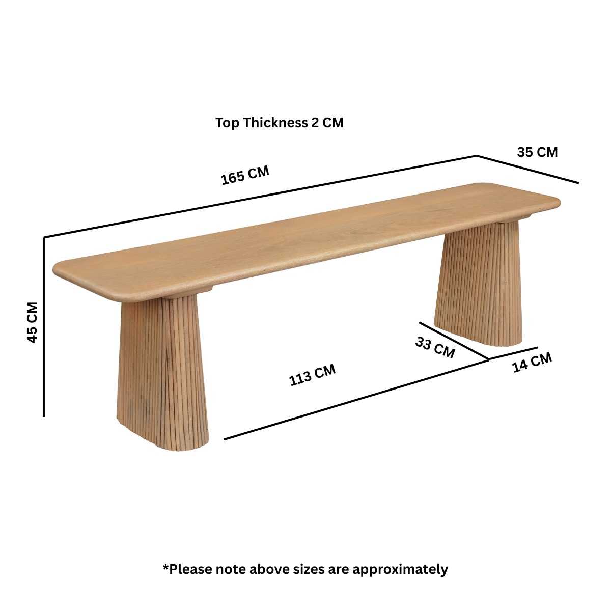 The Austin Solid Wood Dining Bench is a stylish and versatile choice that adds natural charm and subtle luxury to modern UK dining spaces. Handcrafted from high-quality solid mango wood, it has a smooth, rounded top showcasing unique grain patterns and a warm honey finish. Its eye-catching design features two fluted pedestal legs with fine vertical ribbing, blending contemporary elegance with timeless craftsmanship. Measuring 165?35?45 cm, it comfortably seats 3?4 people, making it a great match for the Austin dining table, a chic alternative to chairs, or a flexible option for kitchen islands, breakfast bars, hallways, and entryways. With its low profile and inviting warmth, it effortlessly combines rustic character with modern minimalism.