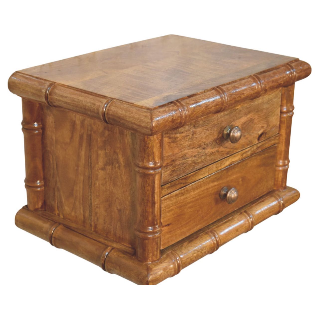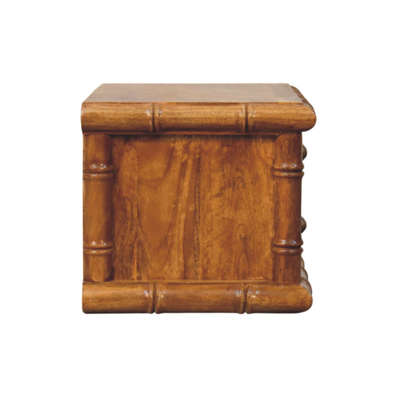 The Bamboo Bedside is a beautifully made piece that adds warmth, balance, and charm to any bedroom. Crafted from 100% solid mango wood with a rich Amber Oak finish, it showcases the Bamboo collection?s signature rounded frame and gently shaped details for a relaxed yet polished look. Its simple drawer design provides handy storage for nighttime essentials, and its compact size makes it a great fit for both modern and traditional spaces. With natural wood grain and a timeless style, the Bamboo Bedside offers everyday practicality with a touch of effortless elegance.