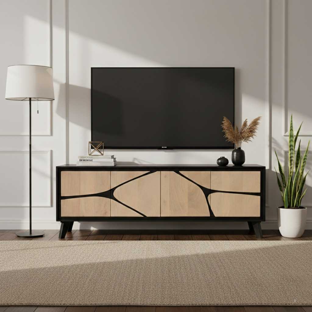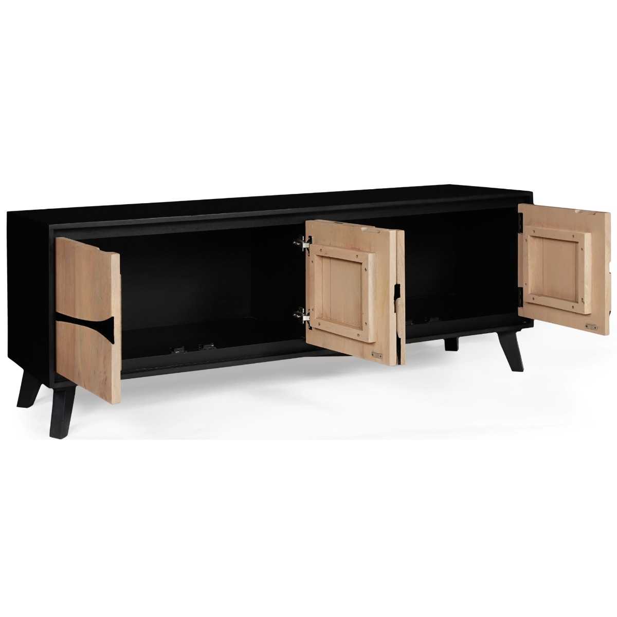 Bring character to your living room with the Boho Large Low Board TV Cabinet, blending the cozy charm of natural wood with modern design flair. Its wide profile, unique black inlay accents, and slim black frame create an eye-catching look while offering plenty of storage for your media must-haves. Perfect as both a functional piece and a bold centerpiece, it?s ideal for everything from movie nights to creating a stylish, relaxed lounge vibe.