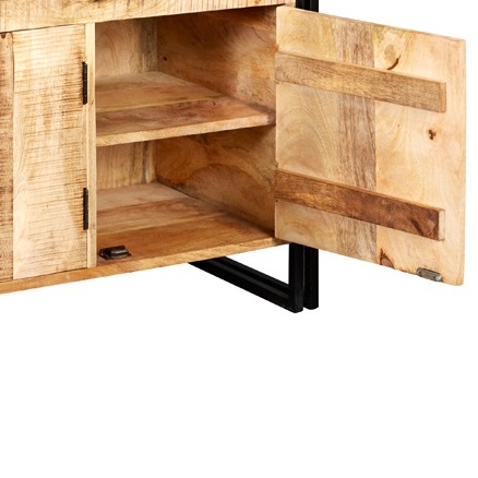 Eco-friendly, hand-crafted range, made from Solid Mango Wood and Reclaimed Industrial Metal. The light grain hardwood is left in its natural state and colour, offering natural variations and slight cracking with banded iron edges