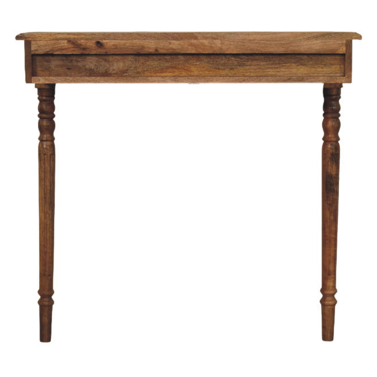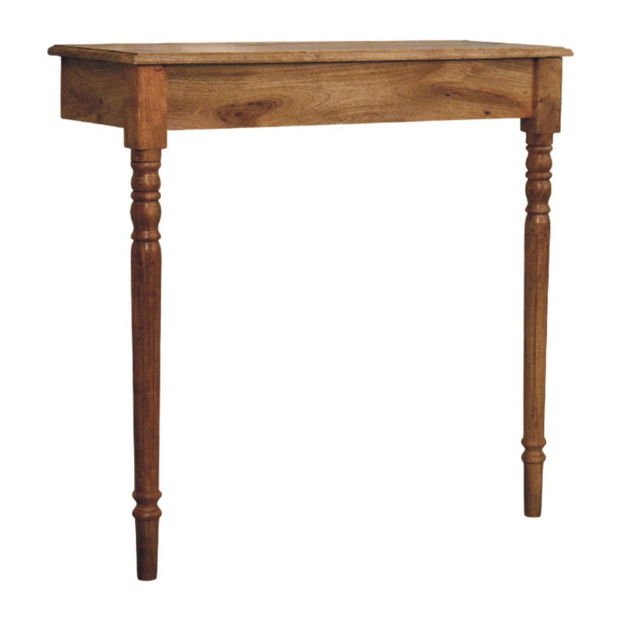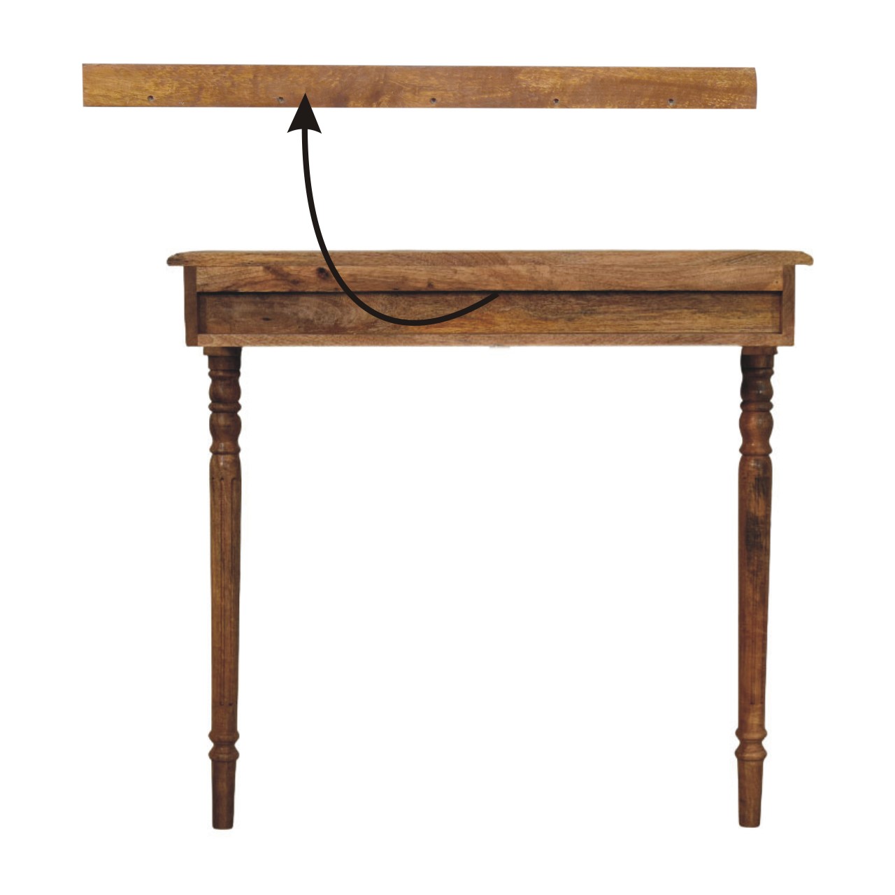 A refined wall-mounted radiator console handcrafted from 100% solid mango wood, designed to frame radiators with architectural elegance. Featuring turned front legs and a patented secure wall-mounted mechanism, this console sits flush against the wall while remaining open-backed to allow unrestricted heat circulation. A practical yet decorative solution for hallways, living spaces, and feature walls.?Safety Disclaimer – This item is a decorative wall-mounted radiator console and not a radiator cover or enclosure. It must be securely fixed to a solid wall using suitable fixings. Designed for lightweight decorative use only. Radiator heat output remains unaffected when installed correctly.