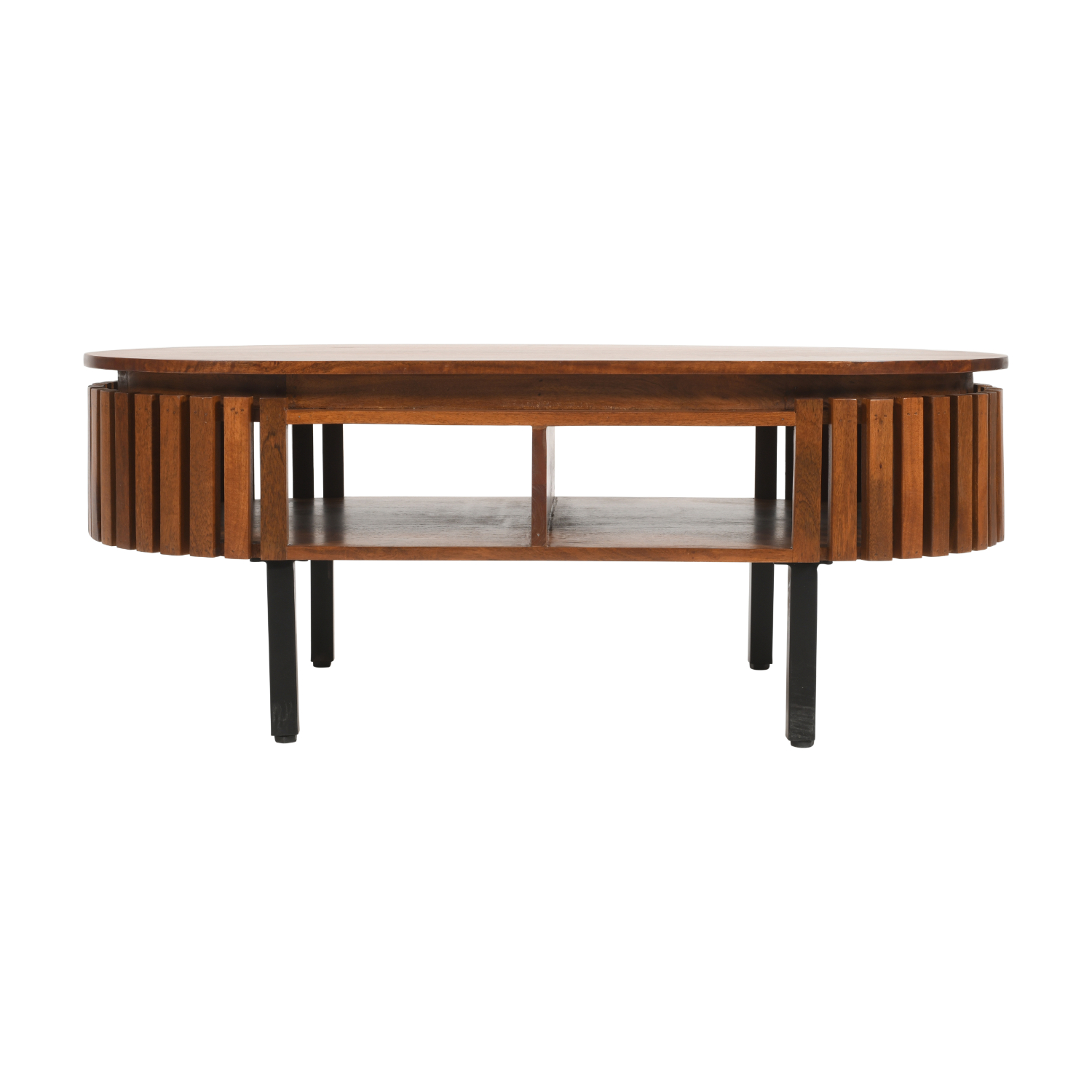 Invite a splash of mid-century flair into your living space with this coffee table’s crisp lines and airy silhouette. A blend of solid walnut wood and slender steel legs crafts a timeless yet modern appeal. An open shelf beneath whispers convenience, offering a nook for magazines and coasters?impeccable for anchoring your living area with a touch of sophistication and practical charm.