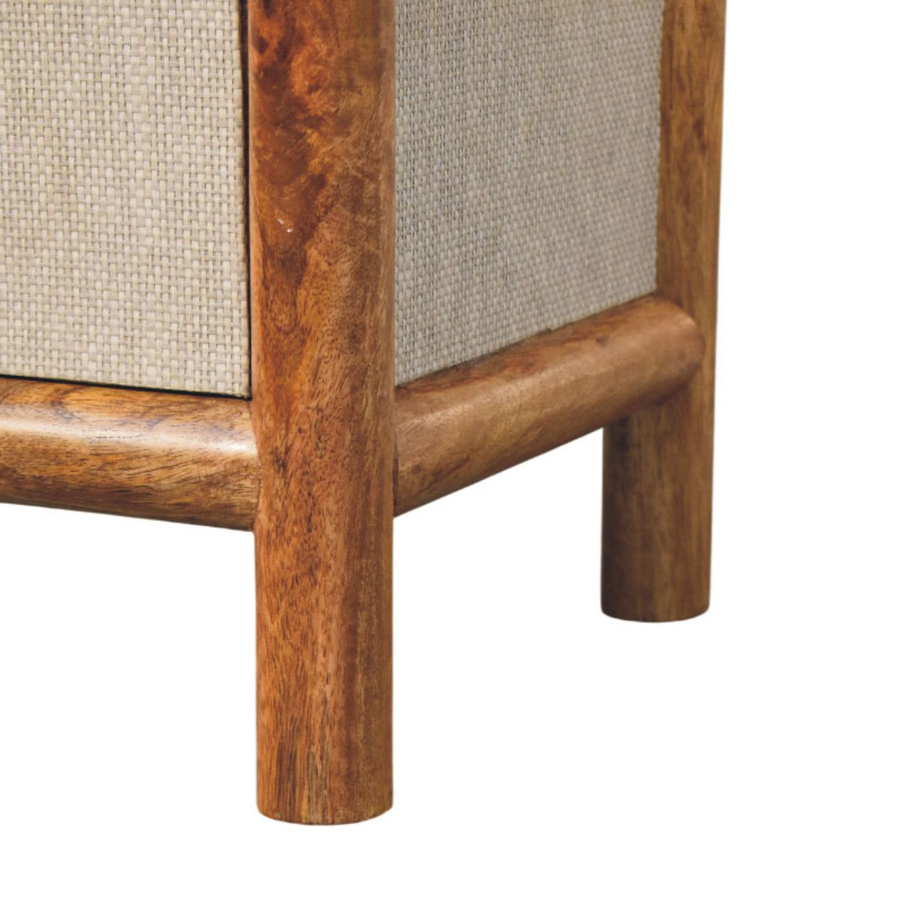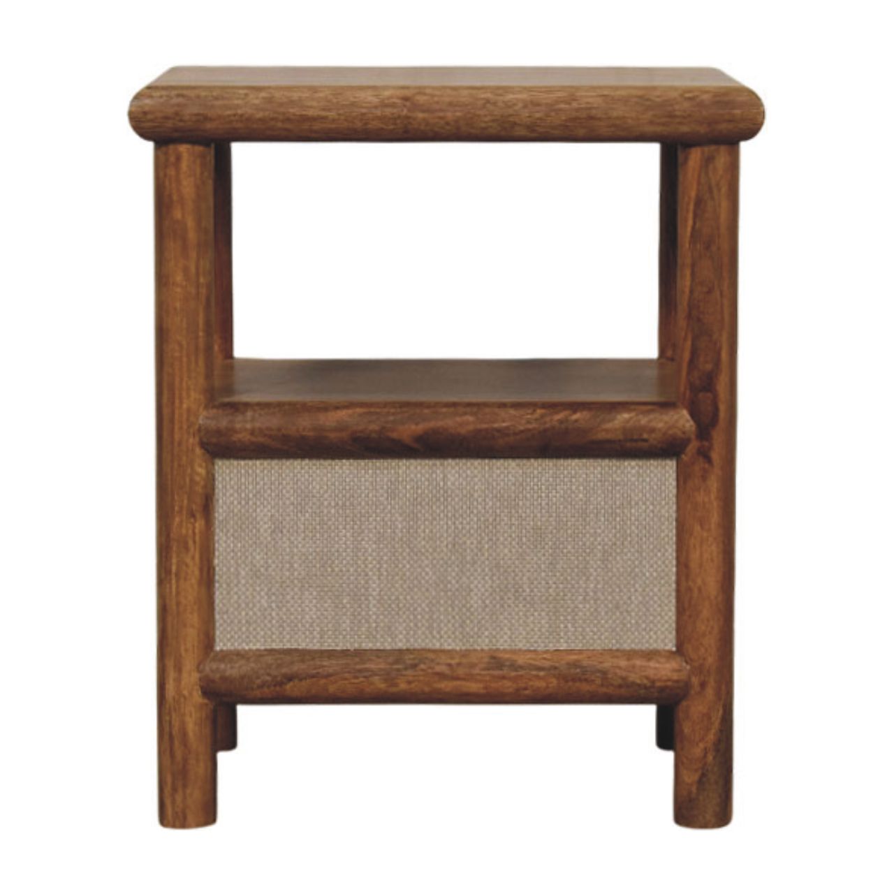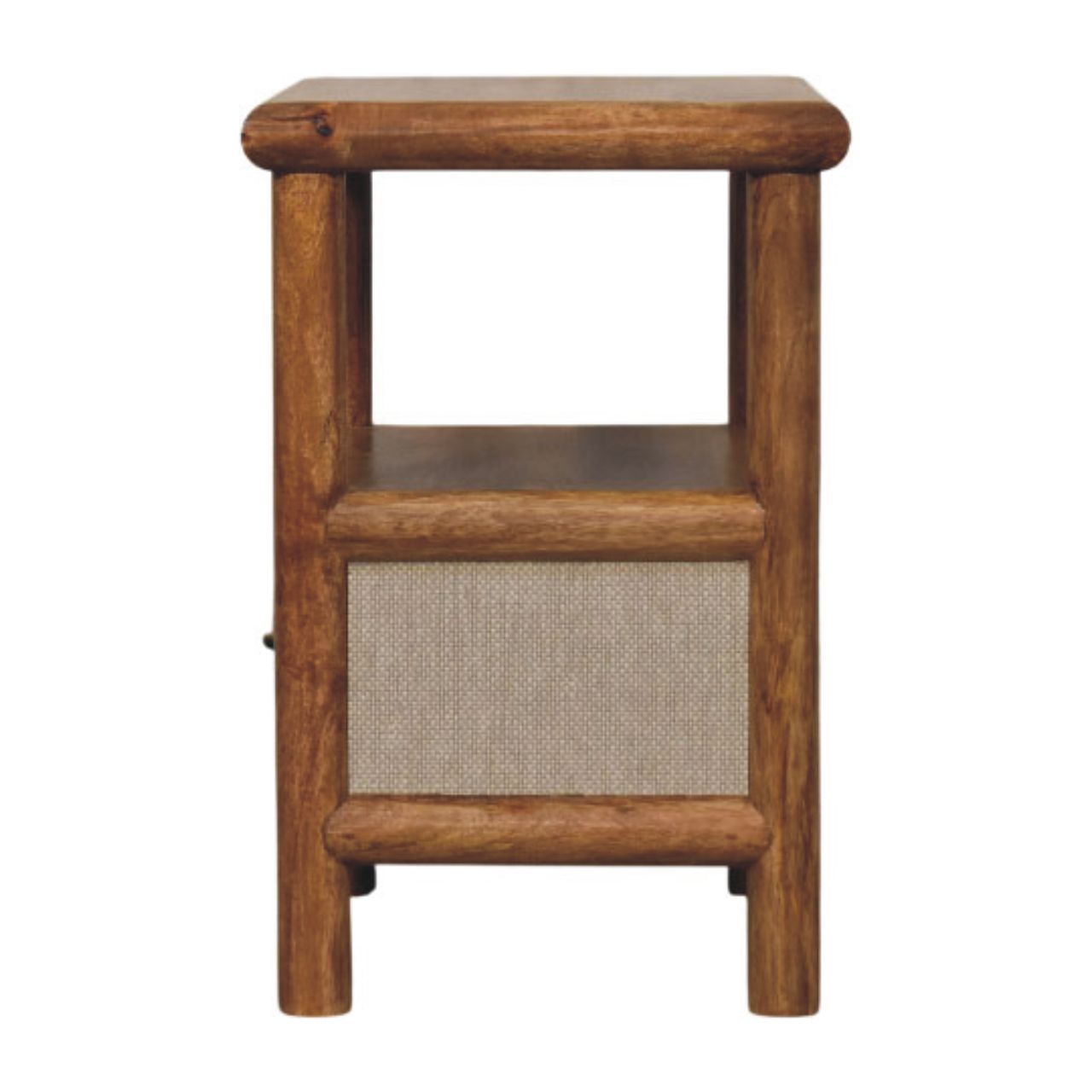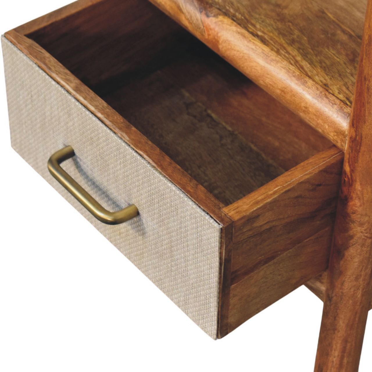 The Ravello Rattan Bedside Table blends warm craftsmanship with relaxed texture, creating a refined yet inviting bedside essential. Handcrafted from 100% solid mango wood in a rich Golden Teak finish, this piece features a softly structured frame paired with a beautifully woven rattan drawer front that adds depth and natural character. The open upper shelf offers easy access to nighttime essentials, while the smooth-glide drawer provides discreet storage finished with a sleek brass handle for a subtle touch of elegance. Balanced, versatile, and thoughtfully detailed, the Ravello Rattan Bedside Table brings effortless warmth and understated sophistication to contemporary and timeless interiors alike.