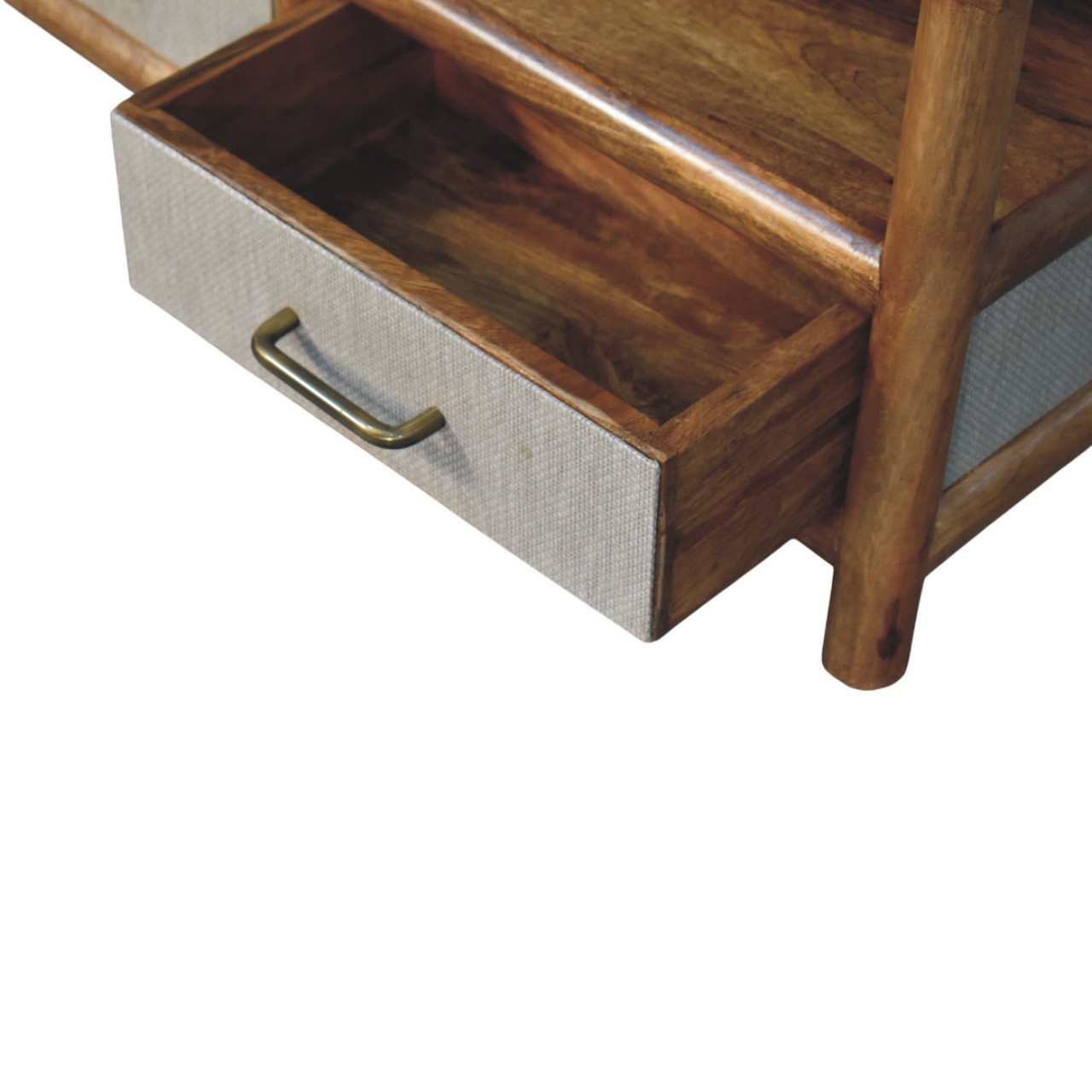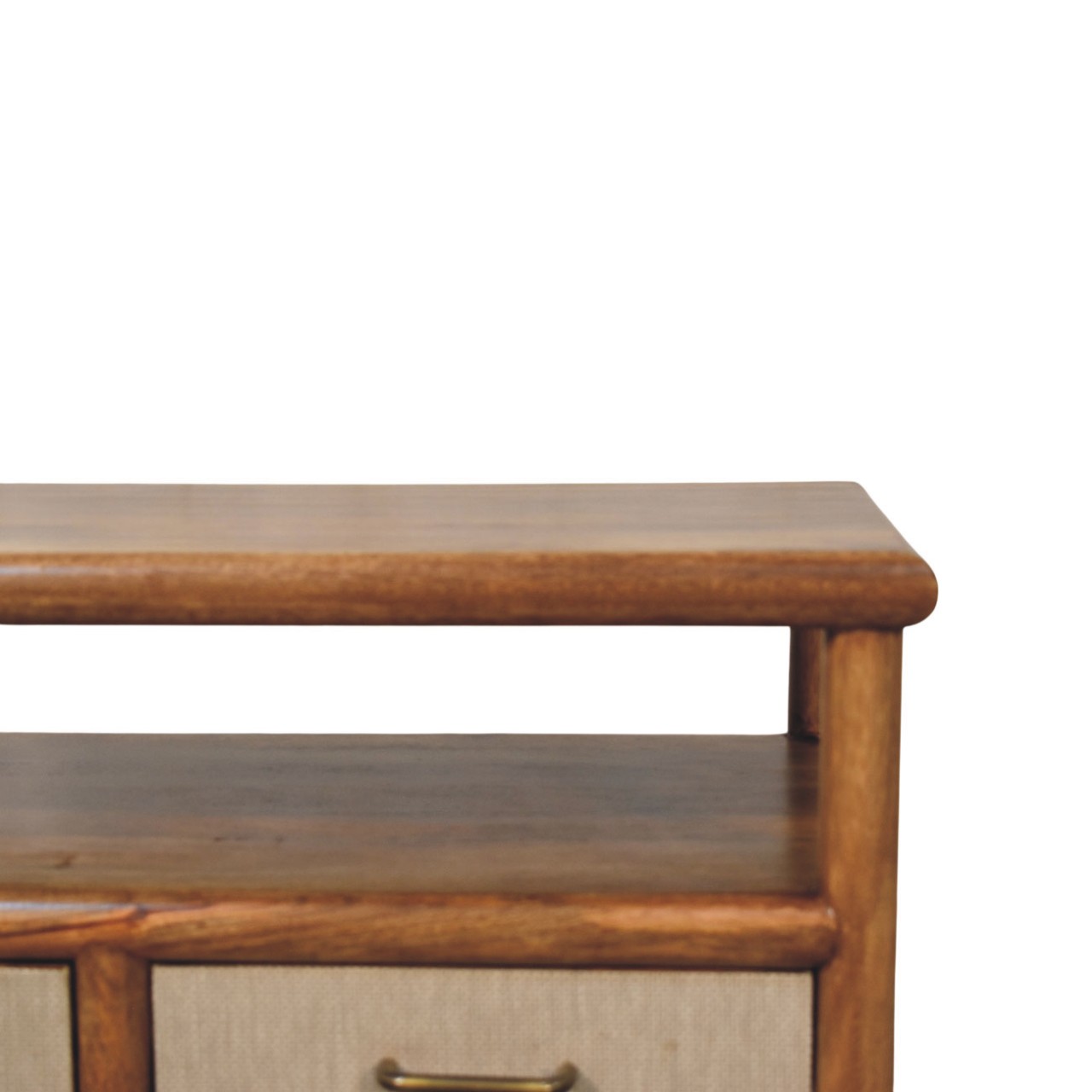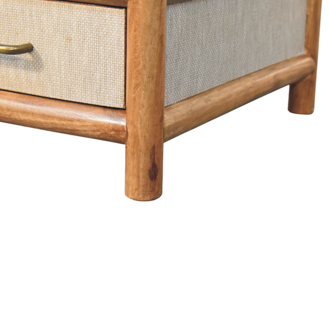 The Solara Rattan Coffee Table is a refined blend of solid form and contemporary texture, designed to anchor the living space with quiet confidence. Expertly handcrafted from 100% solid mango wood, this piece features gently rounded edges, an open lower shelf, and two functional drawers detailed with a newly developed woven rattan panel that adds depth and tactile interest. Finished in a warm Golden Teak tone, the natural grain of the wood complements the soft, structured rattan beautifully, creating a balanced and timeless aesthetic. Thoughtfully proportioned and effortlessly versatile, the Solara Rattan Coffee Table offers practical storage while elevating everyday living with understated elegance.