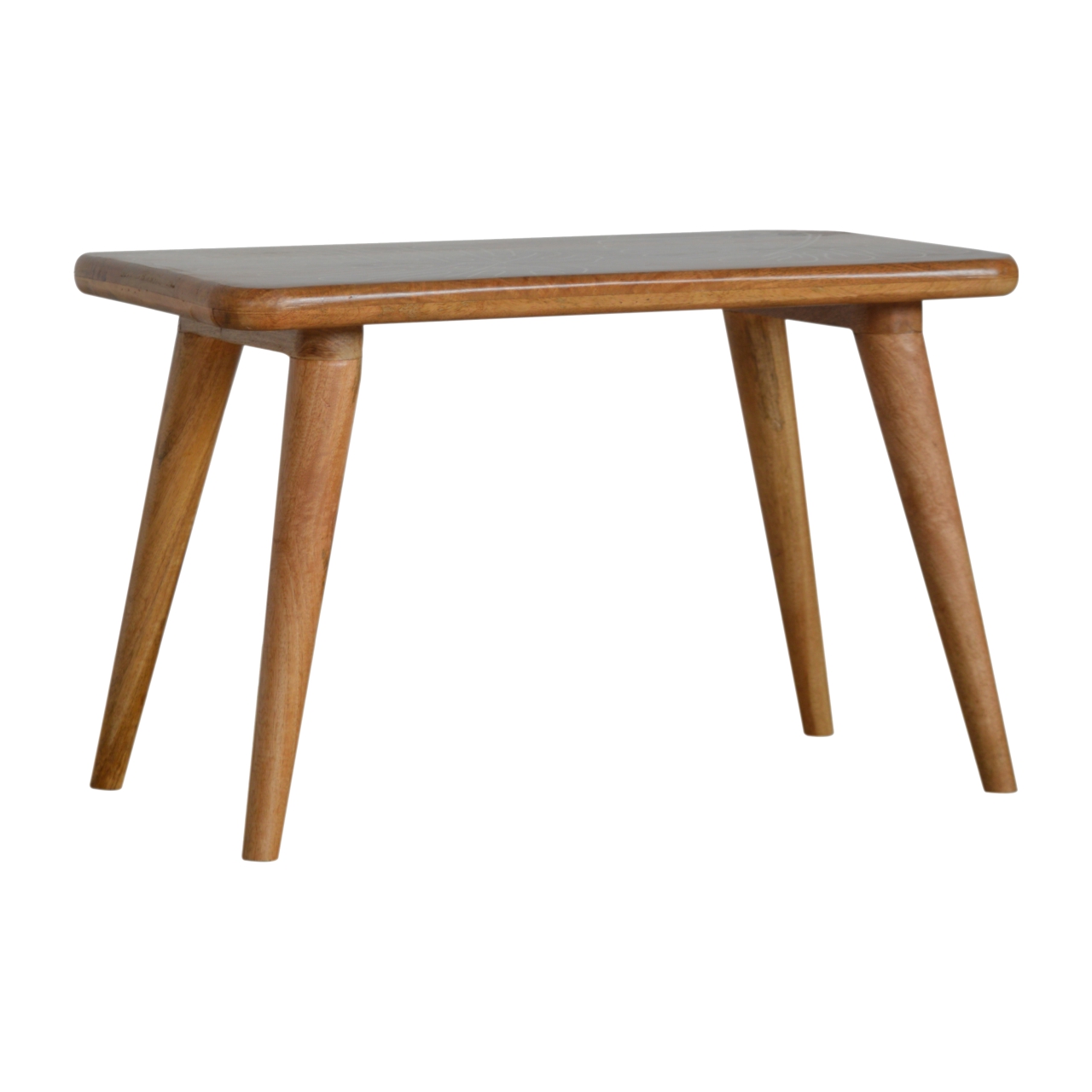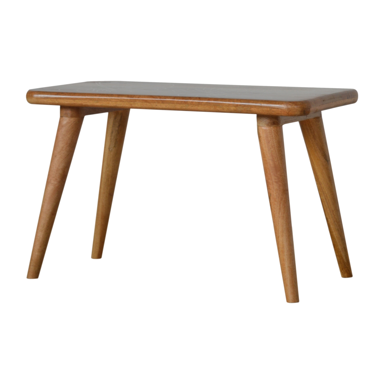 With its distinctive leaf resin pattern this footstool will provide addiitonal seating and style along with giving your home comtemporary touch. Constructed from 100% solid mango wood in a oak finish finish it is robust and sturdy and is particularly suited to sitting neatly in a hallway, bedroom or living room.