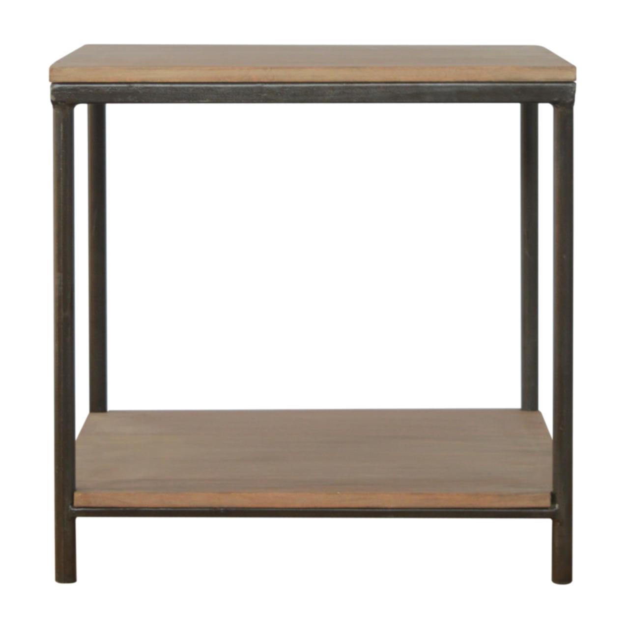 This is our metal base 4 round leg side table with a wooden top and bottom, constructed from 100% solid mango wood, a perfect simplistic addition to any home. This hand crafted piece of furniture is perfect for either a side table or a coffee table.