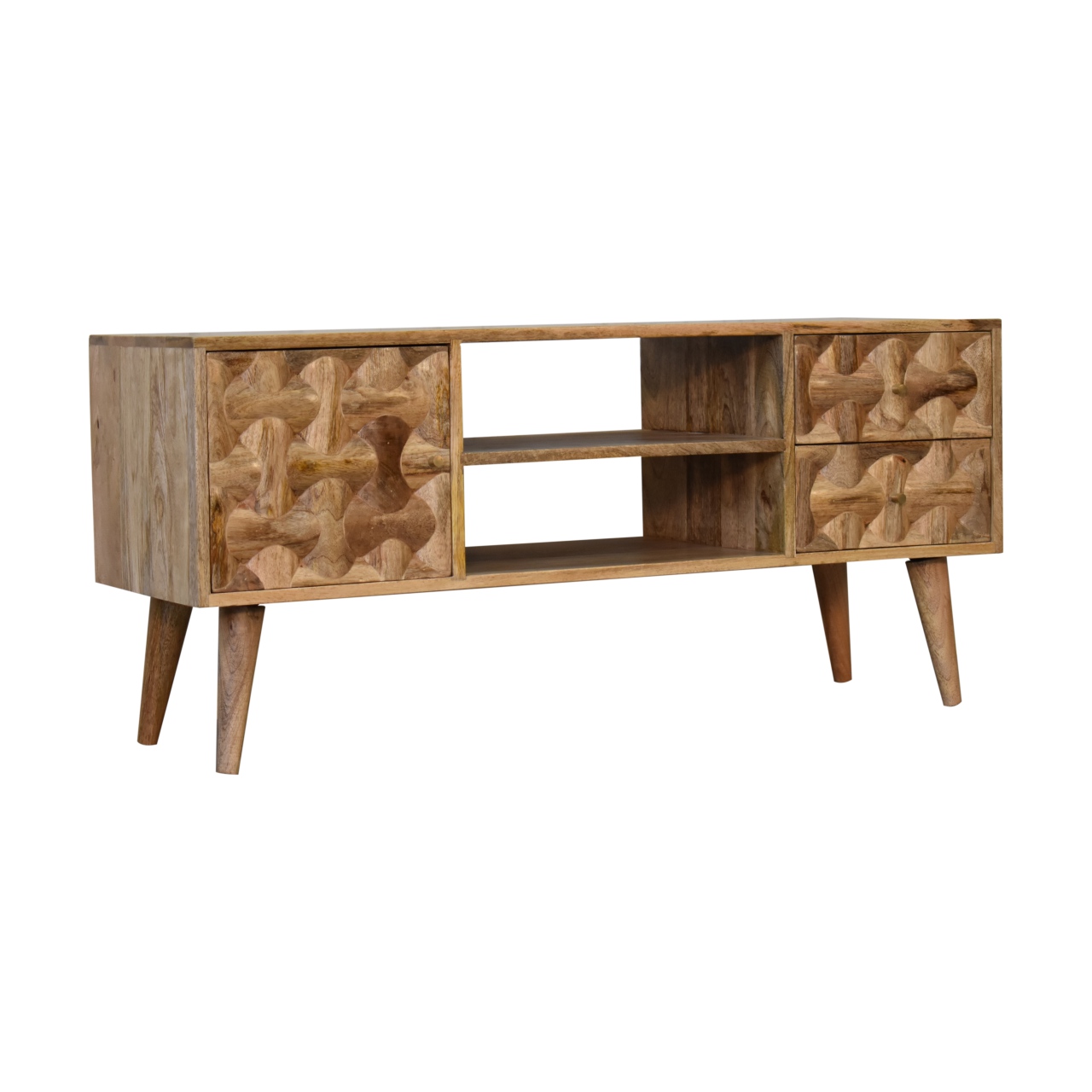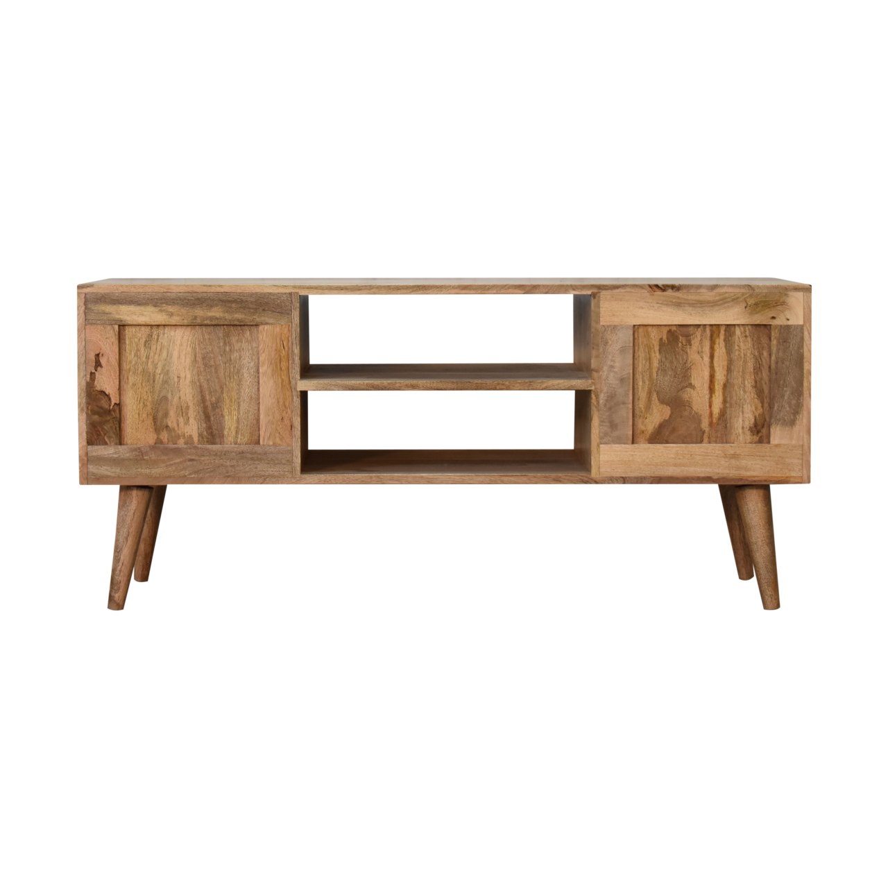 Constructed from solid mango wood in an oak finish finish, this handsome media unit will look extra stylish in the living room. Some features include 2 drawers, 1 cabinet, shiny brass knobs, and nordic style legs. It’s a classic yet highly functional product, so make sure to pair it with other products from the gorgeous Kita range.