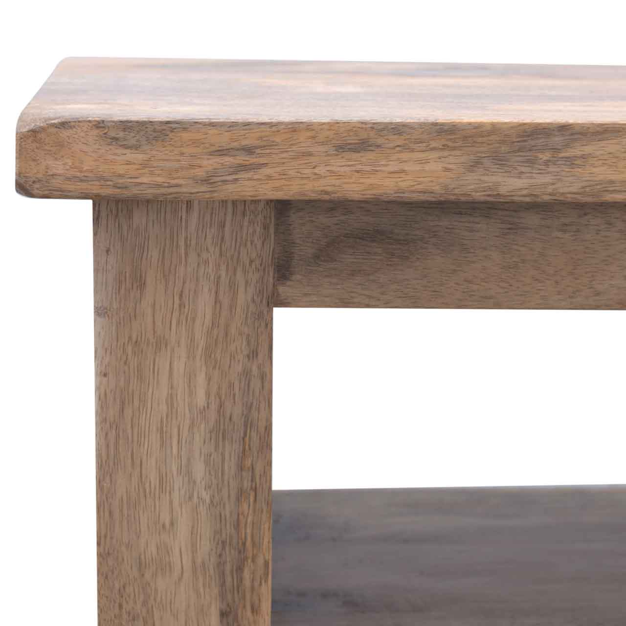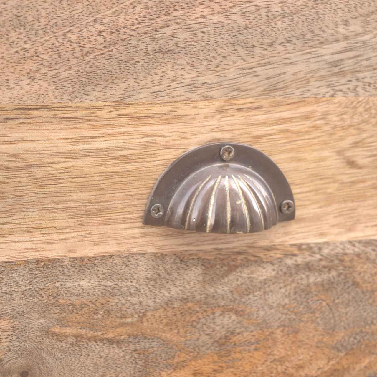 This 3 Drawer, two shelf country style media unit has been made from 100% solid mango wood and features farm house feet, shiny shell handles, oak finish finish and a chunky mango wood top. This unit is perfect for an entertainment system. Its drawers can hold DVDs, CD’s, etc. while the shelves can hold the additional appliances like Sky boxes, etc. As for a TV, the unit can support a small to medium sized TV on the top.