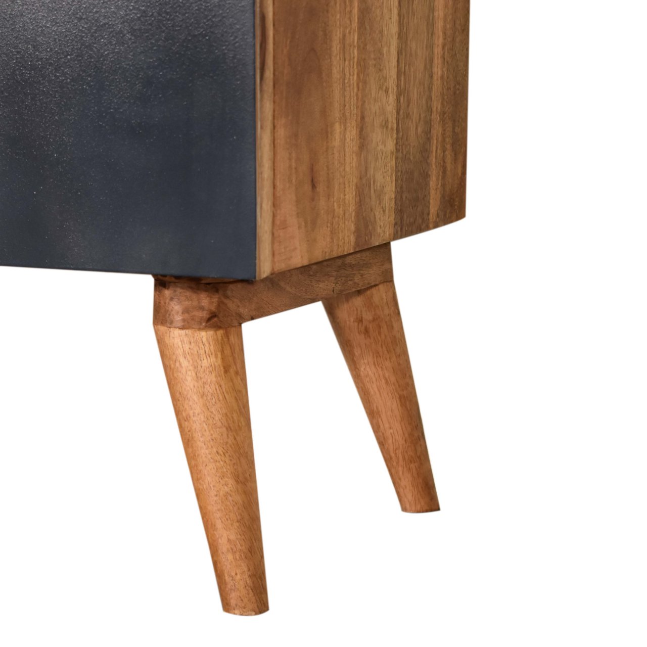 Offering a clean and sharp L pattern and hand painted in 3 rich shades of blue this cabinet offers plenty of room on top for a candle, ornament or plant. Storage is offered with two doors which can be used to easily store bits and pieces and keep them close and handy. Other features incude nordic style legs and the body is constucted from 100% solid mango wood.