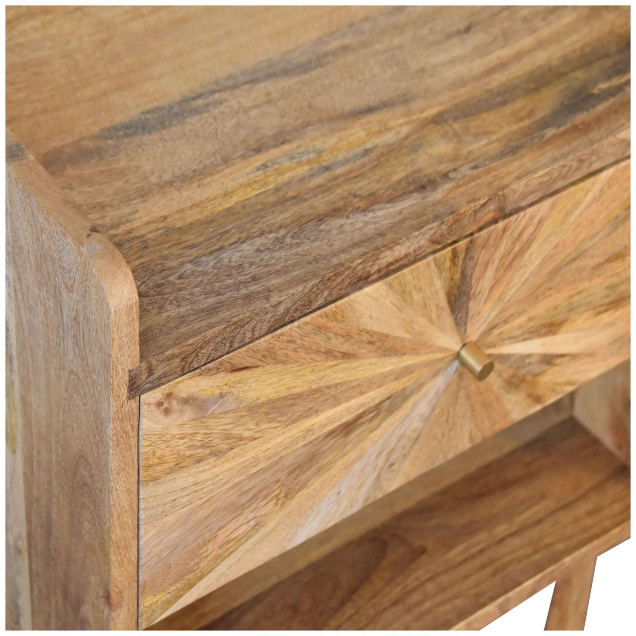 Solid Mango Wood U-Shape Sunrise Open Slot Bedside