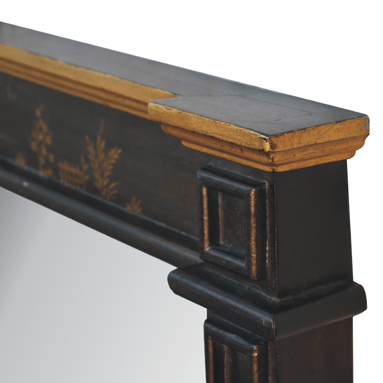 Embrace the essence of Peking art with the Oriental Elegance Wine Cabinet. Crafted from solid mango wood, this table features a hand-painted black base adorned with hand sketched oriental characters, each telling a unique story. The design is highlighted by a plinth bottom, adding an elegant flow. A shiny brass knob complements the piece, ensuring functionality meets style. This bedside table is a perfect blend of durability, artistic charm, and Chinese cultural influence.