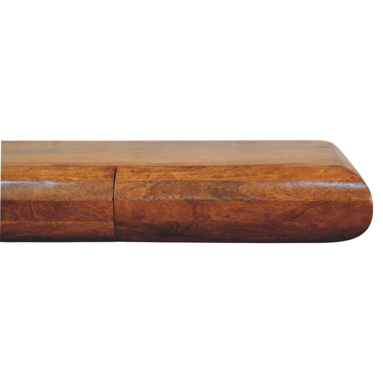 The Solis Wall-Mounted Console is a masterpiece of sleek form and subtle luxury. Handcrafted from 100% solid mango wood in a glowing Amber Oak finish, it features a smooth curved-edge design with two hidden drawers that offer discreet storage. Its floating silhouette creates a modern, airy aesthetic that enhances both compact and spacious interiors. Perfect for hallways, living rooms, or bedrooms, the Solis Console combines functional elegance with refined minimalism ? a timeless addition to any contemporary home.