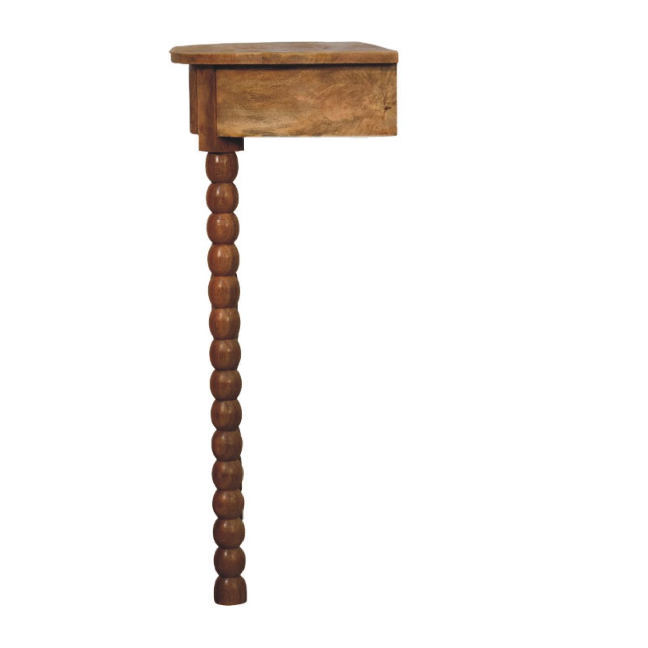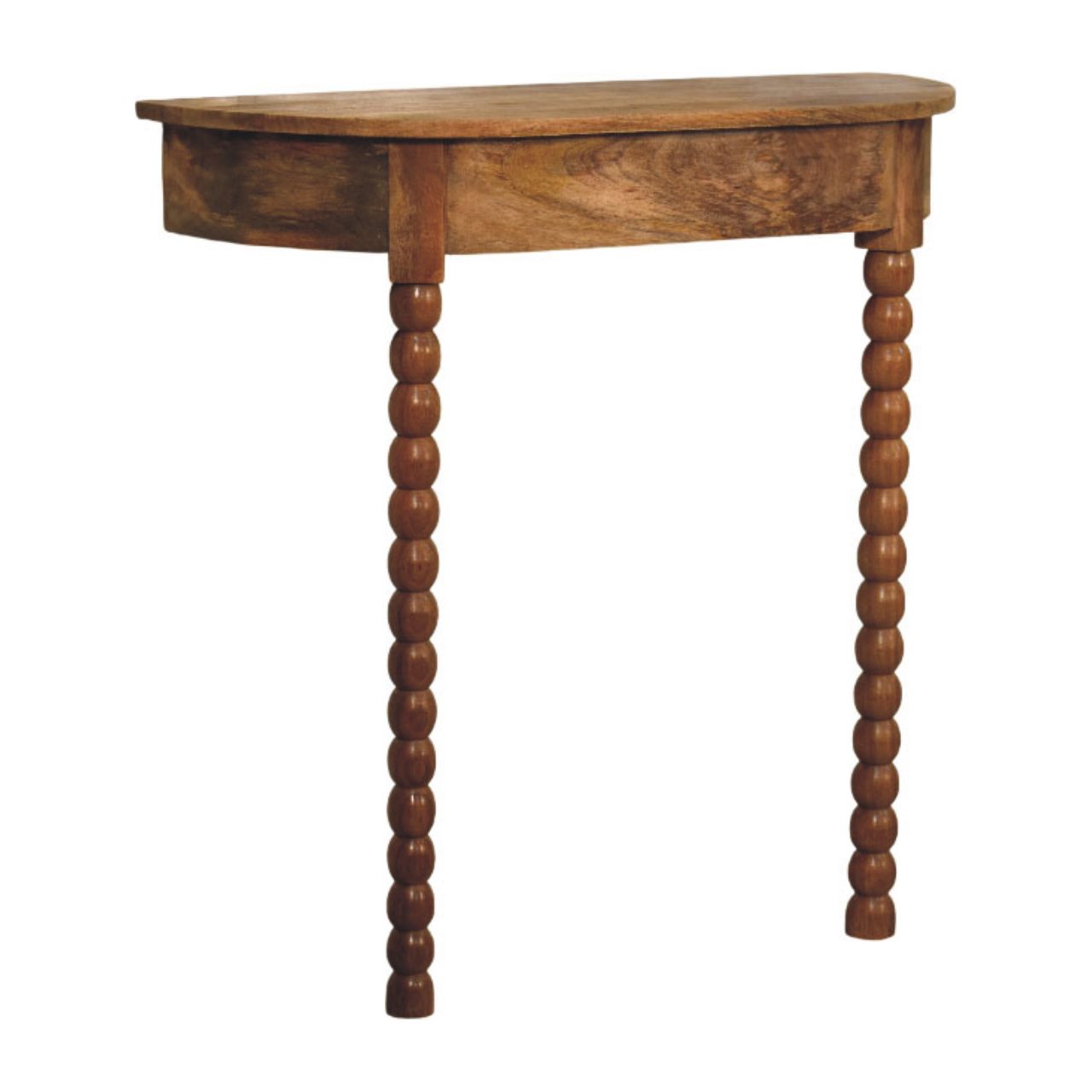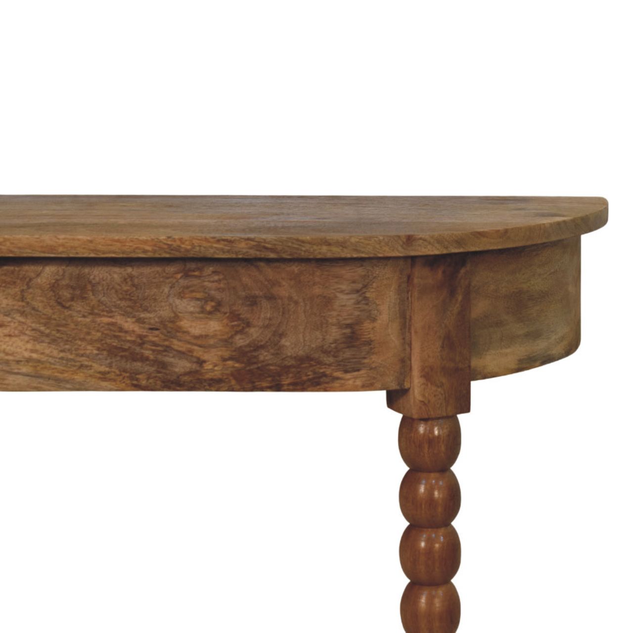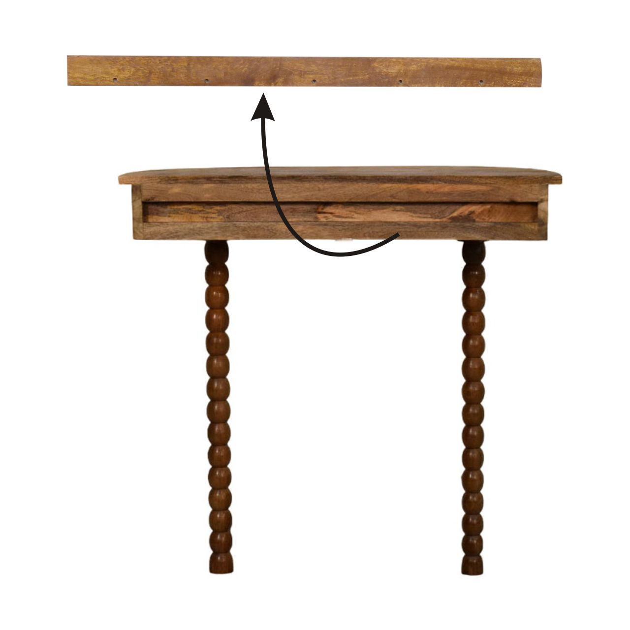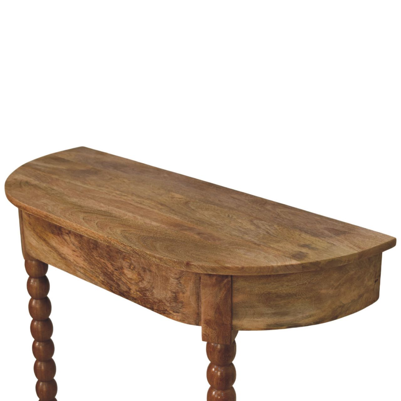 Designed to blend function with refined craftsmanship, the Spindle Radiator Console Table is handcrafted from 100% solid mango wood and finished in a warm Oak-ish tone that highlights the natural grain beautifully. The slender silhouette is supported by elegantly turned spindle legs, giving the piece a light, architectural presence that works perfectly over radiators without obstructing heat flow. A slim top and discreet drawer provide just enough surface and storage for keys, d?cor, or essentials, making it ideal for hallways, living spaces, or behind sofas. Balanced, practical, and timeless, this console brings classic spindle detailing into a thoughtfully modern form.