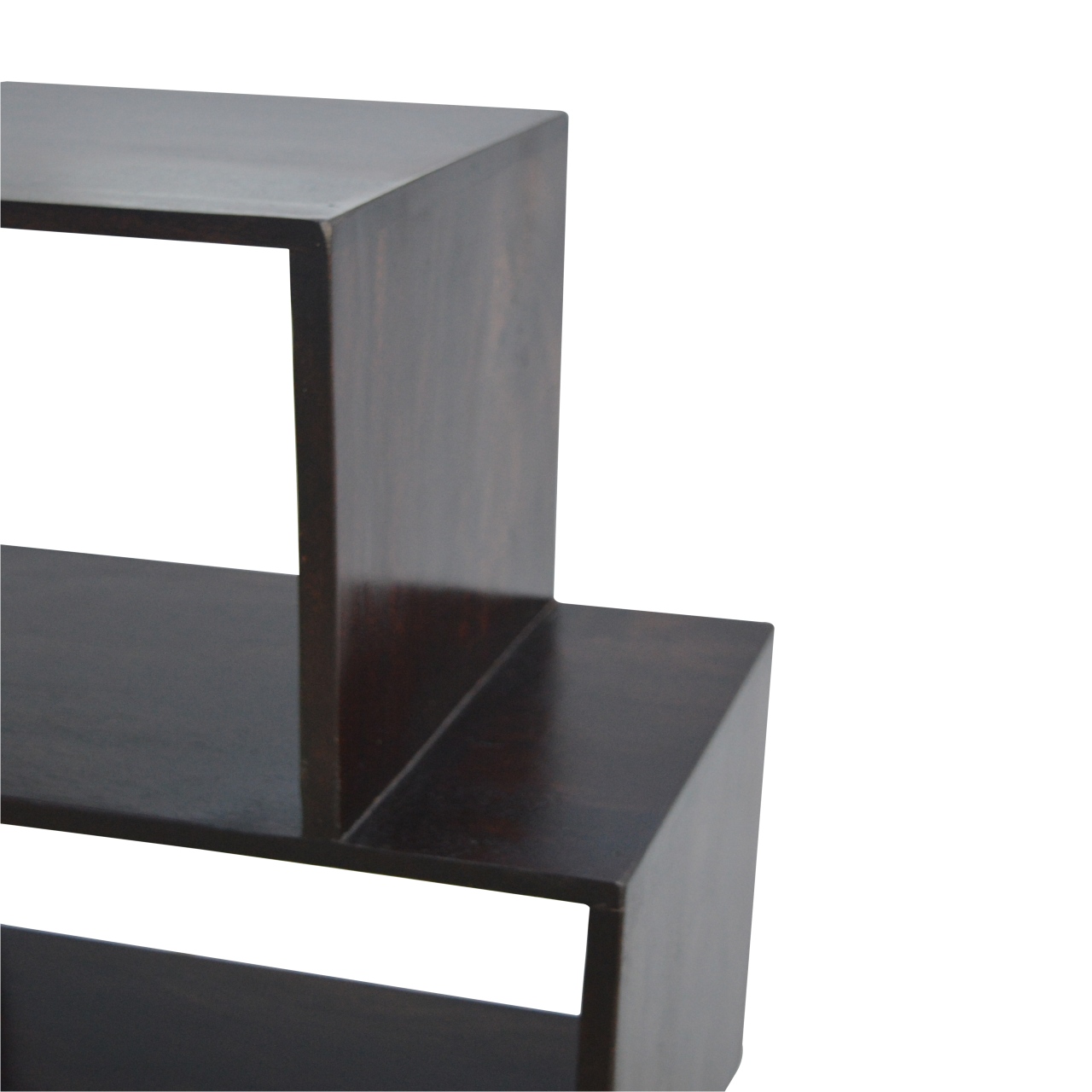 This clean, geometric, open-design display unit has been constructed from 100% solid Sheesham wood and has a rich chestnut finish. It offers enough space for placing things such as pictures, ornaments, vases etc with 4 open shelves to show them all off as the unit offers an open back it will merry nicely with the colour of the wall.